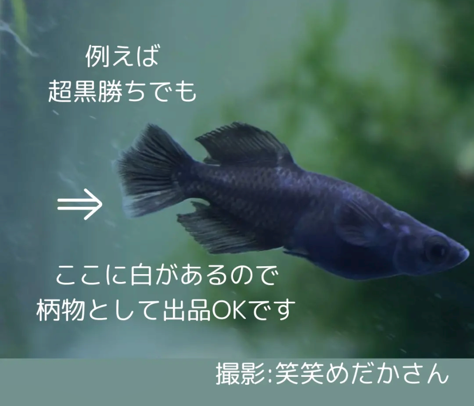 ・出品部門は【上見】【横見】【水槽群泳(5ペア)】からお選びください